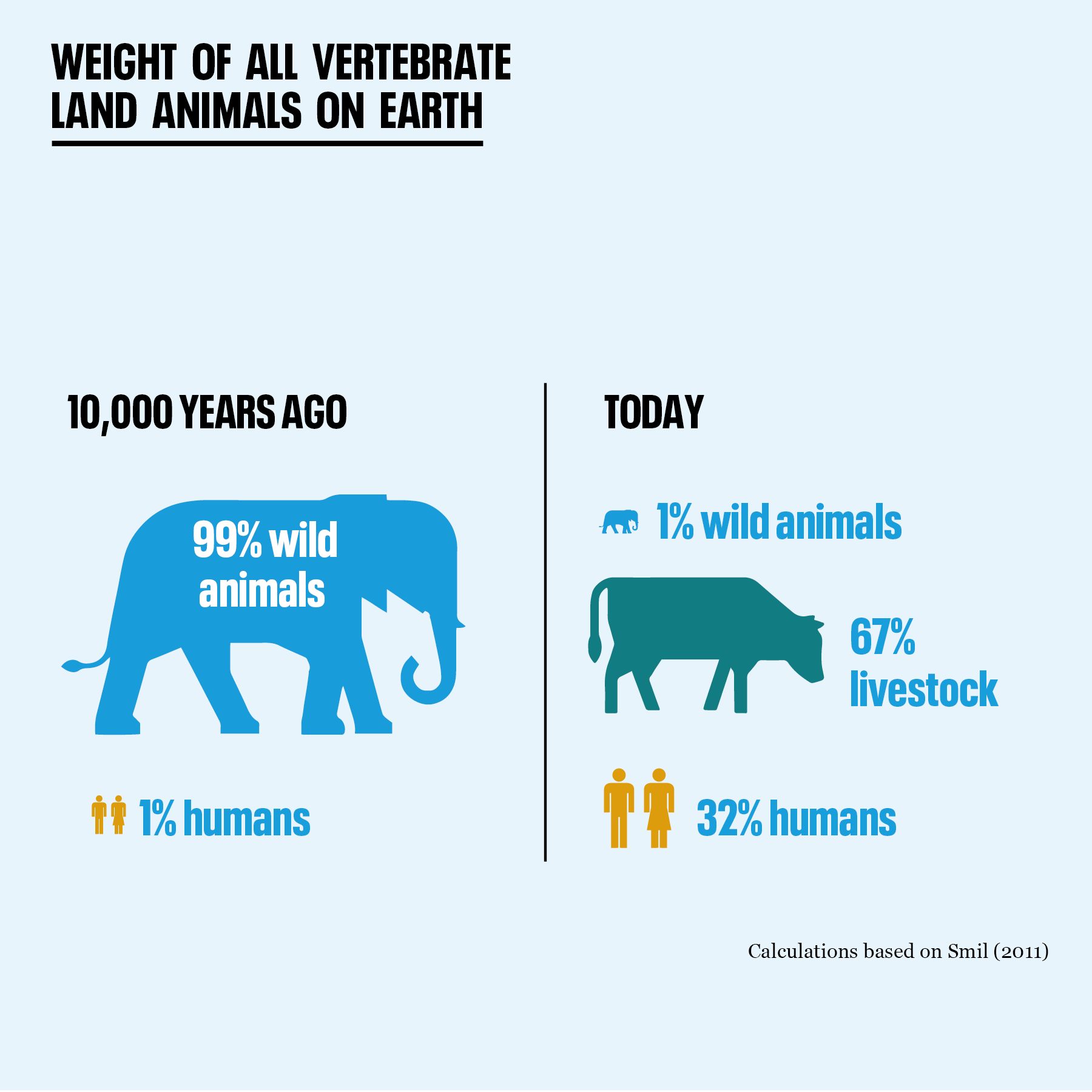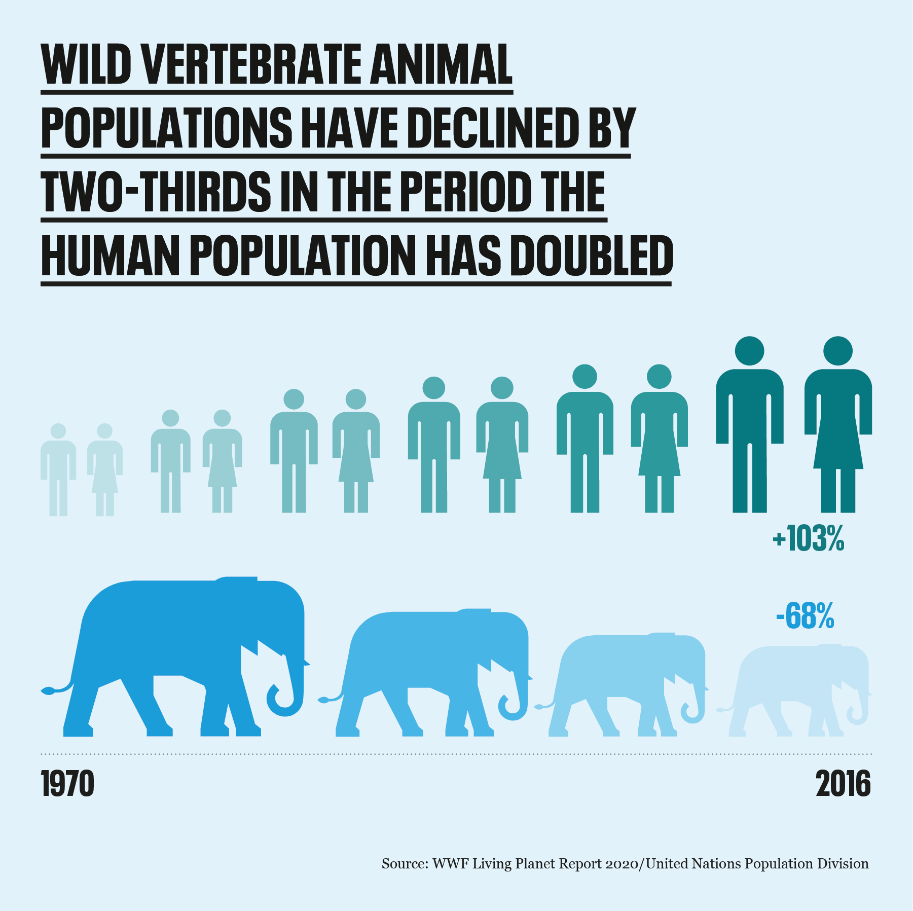 As human population has increased, the number of both animals and animal species has shrunk dramatically.