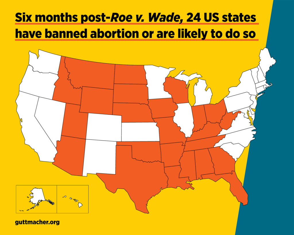 Of the 26 states, 13 already had pre-existing so-called “trigger laws” in place, or laws that predated Roe, essentially taking effect the minute Roe no longer applied. At the time of writing, abortion is either completely or partially banned in 24 states (you can see a full list of those states and the type of ban in place in each at the Guttmacher Institute here).